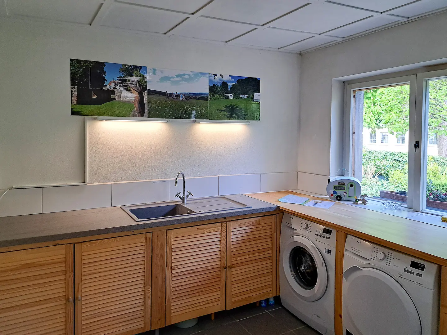 Für einen rundum gelungenen Campingurlaub in der Rhön erwartet Sie auf dem Campingplatz Schloß Roßdorf ein modernes Sanitärgebäude. Es befindet sich im historischen ehemaligen Waschhaus direkt neben dem Schloß und verbindet charmantes Ambiente mit zeitgemäßer Ausstattung.