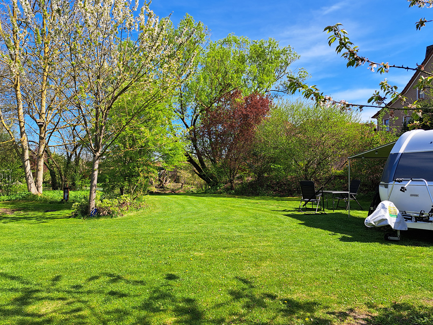 Unsere gepflegten und großzügig angelegten Stellplätze bieten ausreichend Raum für Wohnwagen, Reisemobile bis 7 Meter Länge, Zelte, Motorräder und Fahrräder. Pkw’s werden auf unserem separaten Parkplatz geparkt.