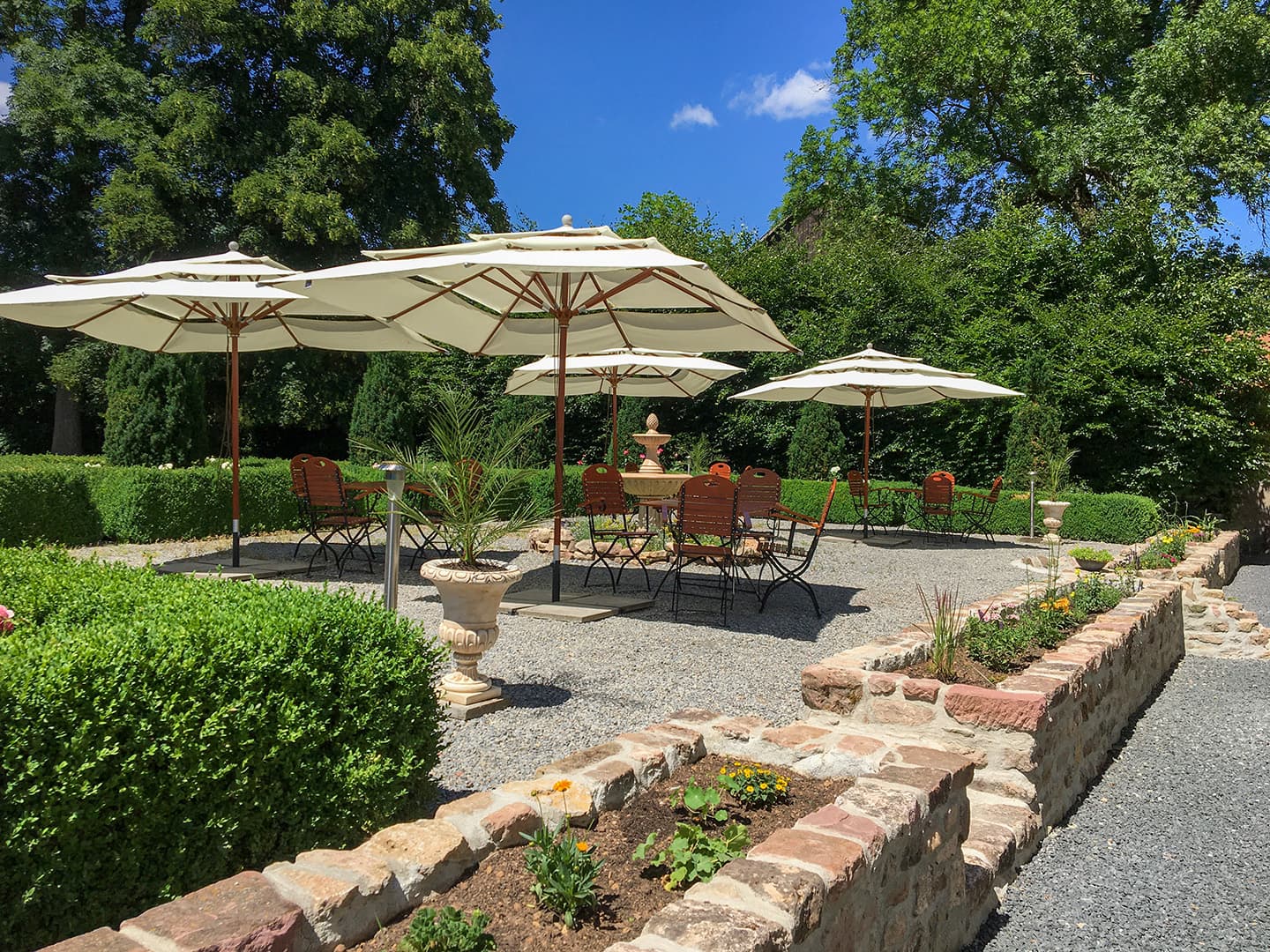 Die historische Bibliothek und das Jagdzimmer stehen für unsere Gäste ebenfalls zur Vermietung und laden zum Verweilen ein. Ob bei einem guten Buch, einem Gespräch in gemütlicher Atmosphäre oder einfach für einen ruhigen Moment zwischendurch – hier lässt sich die besondere Stimmung des Schloßes ganz entspannt genießen. Rund um das Schloß Roßdorf bieten die Terrassen schöne Plätze, um die Ruhe und das Ambiente auf sich wirken zu lassen – perfekt zum Verweilen und Genießen.